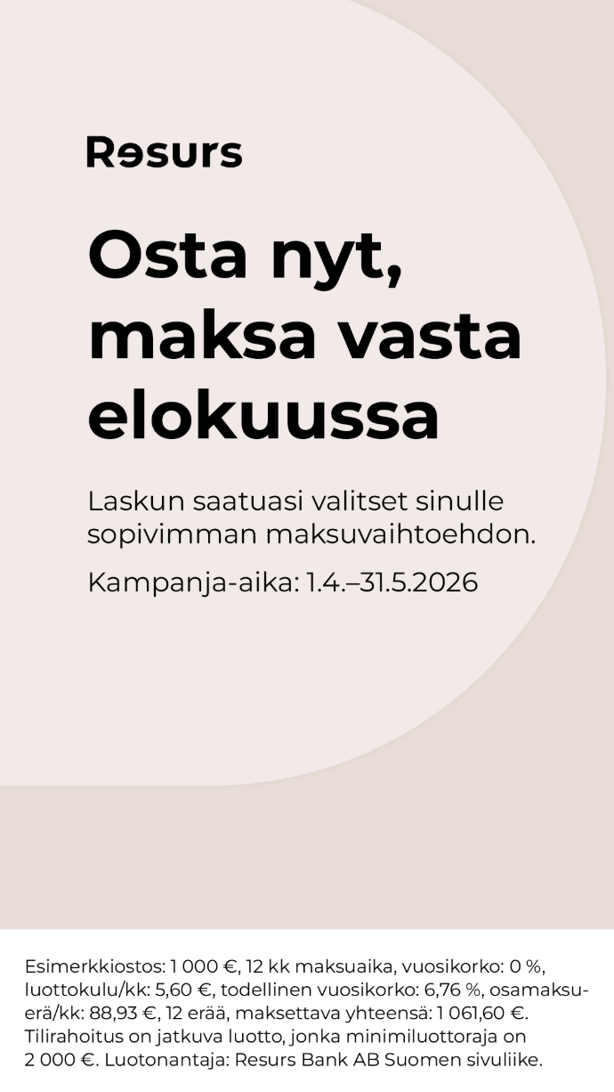 Joskus arjessa on helpompaa, kun kaikkea ei tarvitse maksaa kerralla. Joustavan Resurs Bank -rahoituksen avulla voit valita itsellesi parhaan maksutavan.